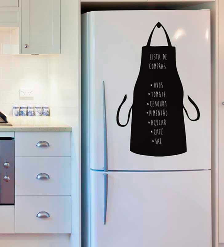 Já imaginou ter na porta da sua geladeira um avental mágico onde você pode anotar recados, receitas, deixar o menu do dia ou fazer a lista de compras. Espaço para escrever é o que não falta neste lindo adesivo decorativo! Compre o seu e ganhe um aliado para te ajudar a se lembrar sempre do que precisa!