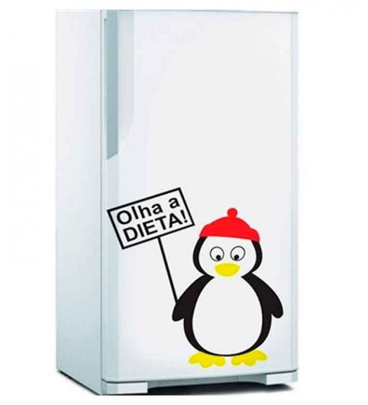 Adesivo de Geladeira Pinguim Placa Olha a Dieta
