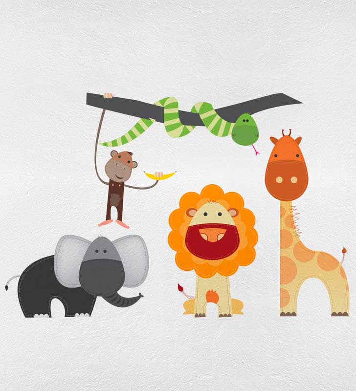 Grande | Contém: 01 Cobra (126 x 37cm altura), 01 Macaco (48x 79cm altura), 01 Girafa (49 x 109cm altura), 01 Leão (52 x 77cm altura) e 01 Elefante (83 x 48cm altura). |
