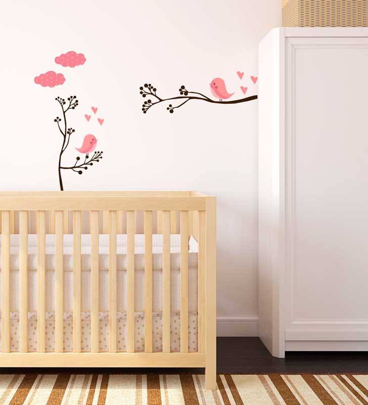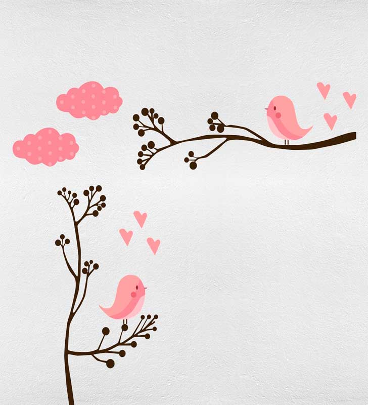 Adesivo de Parede Passarinhos no quarto das meninas vai ficar um charme com a decoração proporcionada pelo adesivo. Ele possui dois apaixonados passarinhos, rodeados por corações em uma linda árvore estilo cerejeira. Até ás nuvens tem cores rosa e o quartinho dela vai ficar muito romântico.
