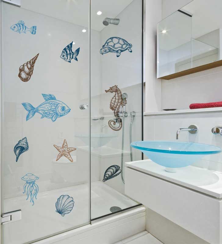 Não é por acaso que os bichos marítimos são repletos de formosura. Esse adesivo de parede Pedacinhos do Mar, tem várias criaturas como algas marinhas, peixes, cavalos marinhos, tartarugas, conchinhas etc. Deixa o banheiro com visual incrementado e relaxante. O mar realmente simboliza coisas boas como tranquilidade, beleza e descanso.