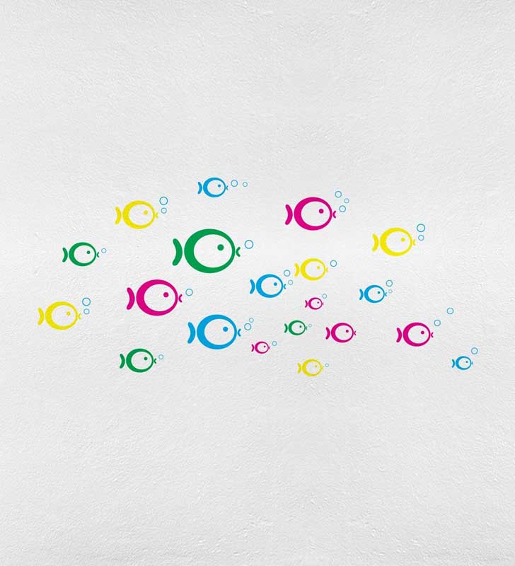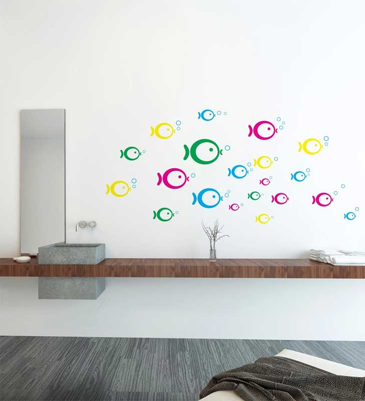 O Adesivo de parede Peixinhos Coloridos vai deixar o banheiro com astral tão alegre e atrativo que ninguém vai ter preguiça de tomar banho. Composto de diversos desenhos peixinhos com todas as cores e tamanhos. Eles podem ficar espalhados pelo ambiente e formar um cardume muito original e moderno. As bolinhas de ar dão o detalhe especial desse adesivo.
