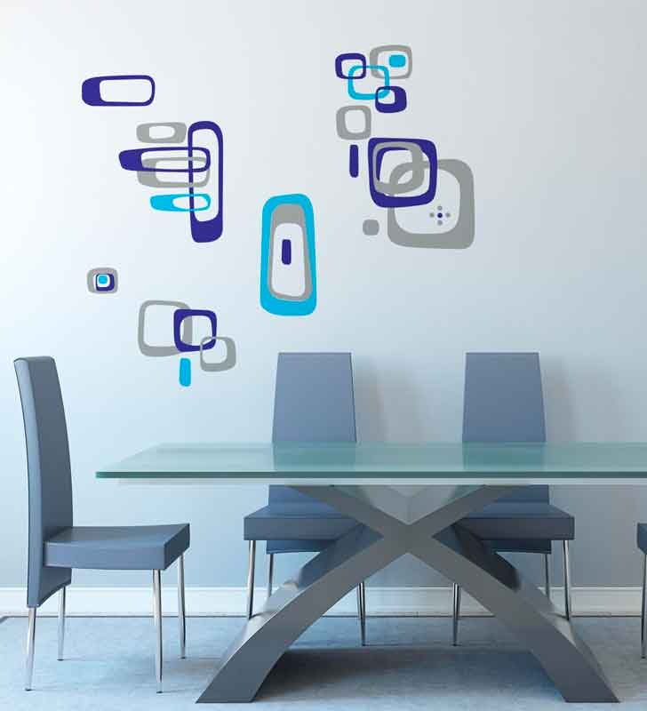 Uma boa pedida para uma decoração com conotação moderna, a sugestão é esse adesivo. Composto de formas geométricas e coloridas que formam um painel artístico de design original e vai deixar a sala de jantar com aspecto contemporâneo, jovial e convidativo, perfeito para ornamentar interiores.
