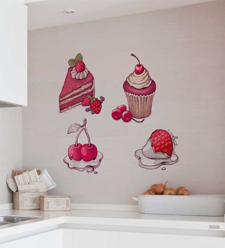 Adesivo de Parede Bolos e Frutas feito sob um rigoroso sistema de qualidade, o adesivo decorativo é produzido com material adesivo ultrafino, de melhor desempenho encontrado no atual mercado. O adesivo é impresso em alta resolução real e preparado com muito carinho para que você tenha uma experiência super agradável tanto durante a aplicação do produto na parede, quanto no resultado da decoração.