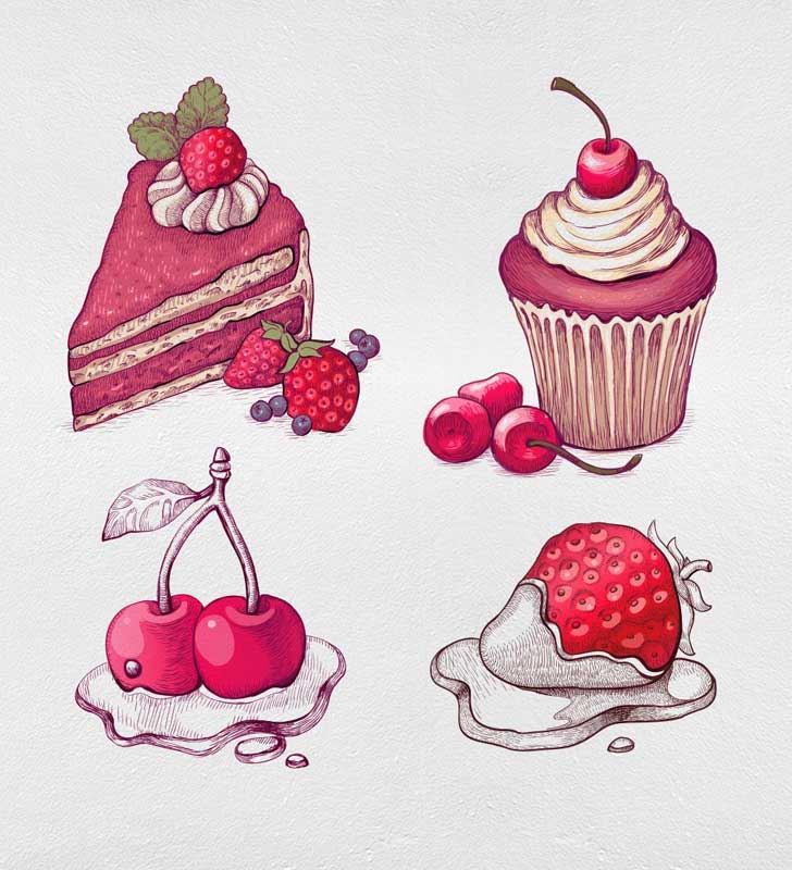 Médio | Contém: 01Cupcake (0.27 x 0.37cm), 01 Bolo (0.30 x 0.34cm), 01 Cereja (0.25 x 0.30cm) e 01 Morango (0.26 x 0.21cm). |