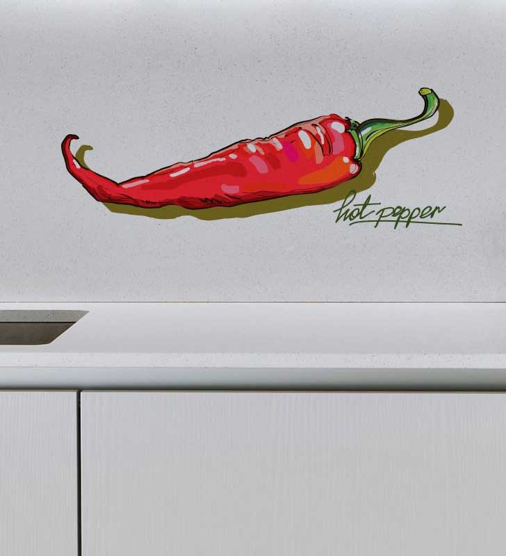 Adesivo de Parede para Cozinha - Hot Pepeer sob um rigoroso sistema de qualidade, o adesivo decorativo é produzido com material adesivo ultrafino, de melhor desempenho encontrado no atual mercado. O adesivo é impresso em alta resolução real e preparado com muito carinho para que você tenha uma experiência super agradável tanto durante a aplicação do produto na parede, quanto no resultado da decoração.