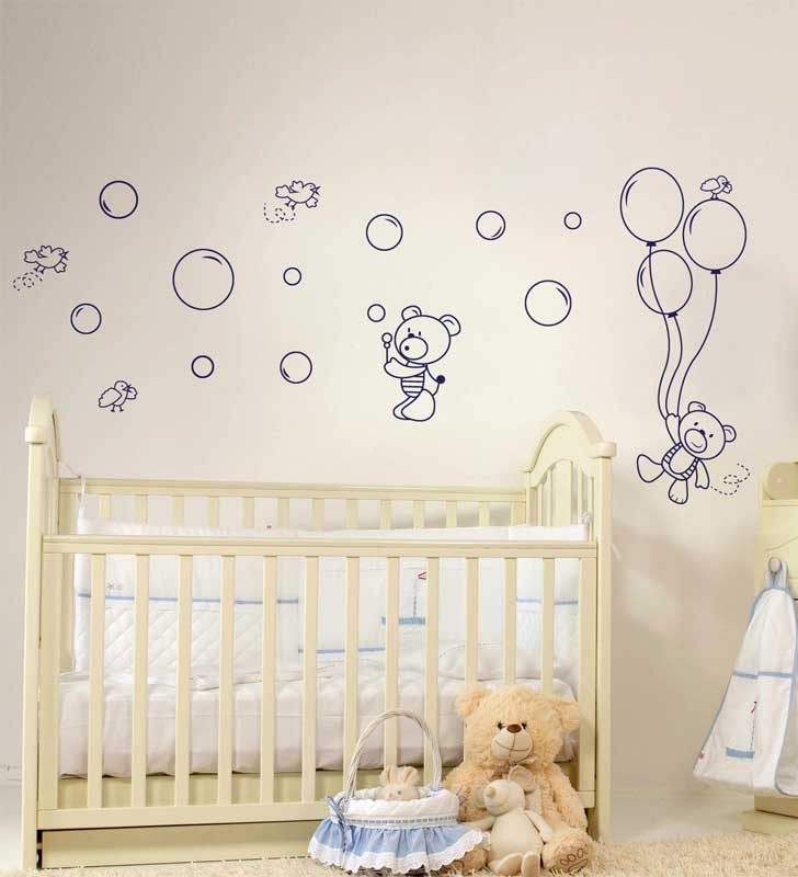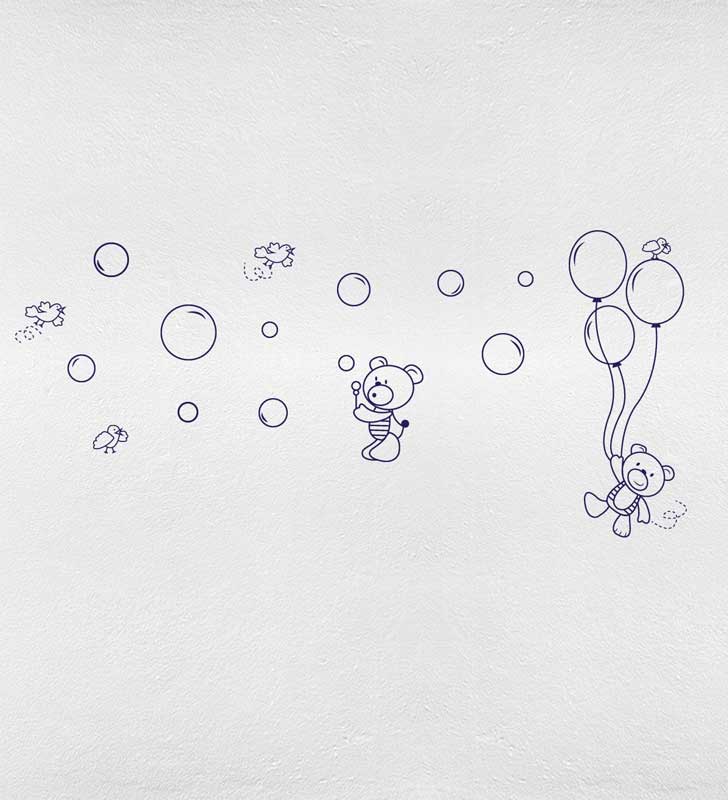 Feitos com traços de desenho tradicional, esse super-bacana adesivo de parede Ursinhos Brincalhões vai enfeitar o quartinho do bebê e produzir uma decoração com ótimo astral. Pendurados nos balões ou soprando bolhinhas de sabão, os ursinhos esbanjam simpatia brincando com passarinhos.