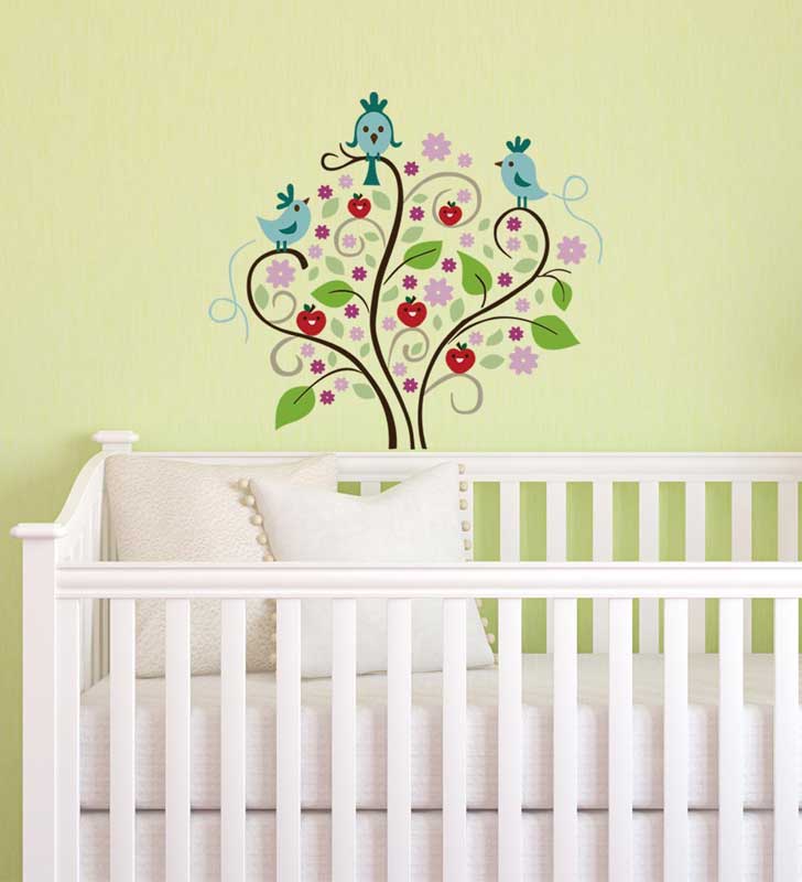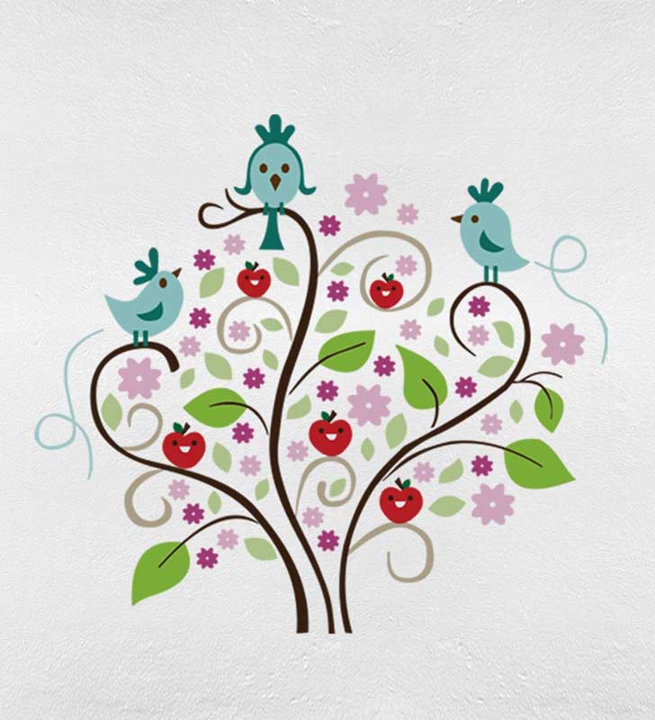 Médio | Contém: 03 Passarinhos (17x22 cm e 17x28cm), 01 Árvore (104x97 cm) e 05 Maças (9x9cm e 7x7cm). |